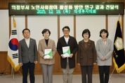 [ 타임즈 - 김시창 기자 ] 의정부시의회 ‘의정부시 노인사회참여 연구회’가 18일 연구용역 최종 결과를 집행부에 전달했다. 의정부시 노인사회참여 연구회는 조세일 대표의원과 김연균 의원, 정미영 의원으로 구성된 의원 연구단체로, 노인의 사회참여 현황과 효과를 분석하고 지역 맞춤형 정책 방안을 제시함으로써 노인의 삶의 질 향상과 세대 통합, 지역 공동체 회복을 위해 지난 5월부터 연구 활동을 돌입해 11월 연구 용역을 마쳤다. 연구회는 노인 관련 총괄 부서인 노인복지과에 노인의 사회참여 유형을 분류하고 방안을 제시하는 등에 대한 연구 결과를 토대로 작성된 연구용역 결과 보고서를 전달했다. 조세일 대표의원은 “이번 연구 결과를 바탕으로 담당부서와 협력하고 소통하여 노인사회참여 방안을 실체화하고 추진해 나갈 예정이다”라며, “고령사회 속에서 다양한 세대가 함께 공존할 수 있는 기반이 조성되길 바란다”라고 밝혔다.