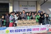 [ 타임즈 - 김시창 기자 ] 양주시 백석읍 새마을부녀회가 설 명절을 앞두고 지역 내 어려운 이웃을 위한 사랑의 나눔 행사를 진행했다. 이번 나눔은 부녀회원들이 각종 행사와 활동을 통해 마련한 판매 수익금으로 준비한 것으로, 사골곰탕 21박스를 각 마을별로 전달했다. 전달된 물품은 관내 홀몸 어르신 및 취약계층 가구 등에 배부될 예정이다. 이날 행사에는 이용재 백석농협 조합장도 참석해 나눔의 의미를 더했다. 이성일 새마을부녀회 회장은 “회원들이 한마음으로 모은 수익금으로 마련한 물품이라 더욱 뜻깊다”며 “작은 정성이지만 이웃들이 따뜻하고 든든한 설 명절을 보내는 데 보탬이 되길 바란다”고 말했다. 이용재 백석농협 조합장은 “지역을 위해 꾸준히 봉사와 나눔을 실천하는 새마을부녀회에 깊이 감사드린다”며 “앞으로도 농협은 지역사회와 상생하며 어려운 이웃을 돌보는 일에 함께하겠다”고 전했다. 백석읍 새마을부녀회는 밑반찬 지원, 김장 나눔, 기부 물품 나눔 등 다양한 봉사활동을 통해 지역사회 나눔 문화 확산에 앞장서고 있다.