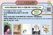 [ 타임즈 - 김시창 기자 ] 청주시립도서관은 2026년 ‘책읽는청주’ 대표도서 선정을 위한 시민선호도 조사를 3월 4일까지 진행한다고 11일 밝혔다. 이번 선호도 조사는 청주시 시민과 독서전문가들이 추천한 291여권 가운데, 책읽는청주 추진위원회가 엄선한 아동·청소년·일반 부문별 5권씩 총 15권을 대상으로 실시한다. 아동부문 도서는 △이상권의 ‘29센티미터’ △백혜영의 ‘구구옥’ △고정순의 ‘난독의 계절’ △허교범의 ‘어린 변호사’ △성은경의 ‘우당탕탕 또경이’이다. 청소년부문 도서는 △백혜영의 ‘꿈을 걷는 소녀’ △성해나의 ‘두고 온 여름’ △최현진 ‘스파클’△김하연의 ‘시간을 건너는 집’ △추정경의 ‘열다섯에 곰이라니’이다. 일반부문 도서는 △문유석의 ‘나로 살 결심’ △최태규의 ‘도시의 동물들’ △김홍의 ‘말뚝들’ △장강명의 ‘먼저 온 미래’△황석영의 ‘할매’이다. 선호도 조사 결과는 대표도서 최종 선정을 위한 참고자료로 활용되며, 최종 대표도서는 3월 25일 개최되는 책읽는청주 추진위원회에서 결정될 예정이다. 참여는 청주시민 누구나 가능하며, 아동·청소년·일반 각