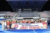 [ 타임즈 - 김시창 기자 ] 아산고등학교 하키팀이 제106회 전국체육대회 하키 남고부에서 9년 연속 우승을 차지하며 대한민국 고교 하키의 절대 강자로서 위상을 다시 한 번 입증했다. 이번 대회는 전국의 시·도를 대표하는 하키 명문교들이 참가한 가운데 치열한 경쟁 속에서 진행됐다. 아산고는 16강부터 결승까지 전 경기에서 완벽한 경기 운영과 탄탄한 조직력을 바탕으로 무패 행진을 이어갔다. 16강전에서는 서울 용산고를 3대 1로 제압하며 기세를 올렸고, 8강에서는 전북 김제고를 5대 0으로 완파하며 공수의 균형을 보여주었다. 이어 4강전에서는 인천 계산고를 상대로 6대 2의 완승을 거두며 결승 무대에 올랐다. 결승에서는 경기 이매고와 맞붙어 치열한 공방전을 펼친 끝에 3대 1 승리를 거두며 전국체육대회 9연패라는 대기록을 달성했다. 아산고 선수단은 경기 내내 집중력을 잃지 않고 빠른 역습과 정교한 패스 플레이로 상대를 압도했다. 이성진 감독은 “매 순간 최선을 다한 선수들의 투혼이 만들어낸 값진 결과”라며 “어려운 상황에서도 끝까지 포기하지 않는 아산고의 정신이 오늘의 우승을 가능하게 했다”고 소감을