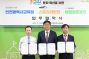 [ 타임즈 - 김시창 기자 ] 인천광역시교육청은 9월 30일 ㈜월미하이랜드(대표 이덕성) 스토리지인천, 남동희망공간(대표 유병희)과 함께 ‘읽걷쓰’ 문화 확산을 위한 업무협약을 체결했다. 이번 협약으로 참여 기관들은 ▲‘읽걷쓰’ 연계 프로그램 운영 ▲지역사회 공헌 활동 협력으로 ‘읽걷쓰’ 활성화와 시민문화 정착을 위해 함께 나선다. 특히 관련 정보와 자원을 공유해 일상이 배움이 되는 교육환경을 조성하고 지역사회와 함께 성장하는 기반을 마련할 계획이다. 도성훈 교육감은 “인천교육은 ‘읽걷쓰’ 기반의 올바로․결대로․세계로 교육으로 학생성공시대를 활기차게 열어가고 있다”며 “이번 업무협약을 통해 기관 간의 상호 신뢰와 협력을 바탕으로 ‘읽걷쓰’ 실천 문화가 더욱 확산되기를 바란다”고 말했다.