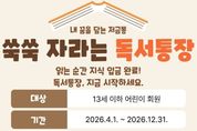 [ 타임즈 - 김시창 기자 ] 천안시 두정도서관은 내달부터 어린이들의 독서습관 형성을 위한‘쑥쑥 자라는 독서통장’프로그램을 운영한다고 18일 밝혔다. 독서통장은 어린이들이 읽은 책의 제목과 날짜를 기록하며 자연스럽게 독서에 대한 흥미와 성취감을 높이기 위해 마련됐다. 이번 프로그램은 △독서통장 첫걸음 △오늘부터 다시 1일 △차곡차곡 독서 챌린지 등 3가지로 구성됐으며, 미션 달성 시 다채로운 선물을 제공할 예정이다. 이번 프로그램은 13세 이하 어린이를 대상으로 운영되며, 독서통장 발급을 희망하는 어린이는 도서관 회원증을 지참해 두정도서관 1층 유아체험실을 방문하면 된다. 자세한 사항은 천안시 도서관 누리집을 참고하거나 두정도서관팀으로 문의하며 된다. 이충미 두정도서관장은 “독서통장을 통해 어린이들이 독서에 흥미를 느끼고, 꾸준한 독서 습관을 기를 수 있길 바란다”고 말했다.