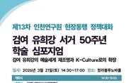[ 타임즈 - 김시창 기자 ] 인천연구원은 2026년 3월 21일 오후 2시 30분, 청라블루노바홀에서 “검여 유희강의 예술세계 재조명과 K-Culture로의 확장”을 주제로 '제13차 현장동행 정책대화'를 개최한다. 인천연구원이 2026년부터 본격 시행 중인 ‘현장동행 정책대화’의 일환으로 마련된 이번 행사는 검여 유희강 서거 50주년을 기념해 인천서구문화재단과 공동주관으로 개최되며, 그의 예술세계와 정신을 재조명하고 K-Culture로의 확장 가능성을 모색하는 학술 심포지엄으로 진행될 예정이다. 이날 개회식에서는 김성하 인천서구문화재단 대표이사가 개회사를, 강범석 인천광역시 서구청장과 최계운 인천연구원장이 축사를 맡는다. 이어 진행되는 첫 번째 발표에서는 박재복 경동대학교 국제융합학부 교수가 “검여 유희강의 위상 재정립과 예술정신 계승”을, 두 번째 발표에서는 안현정 성균관대학교 박물관 학예실장이 “검여 예술의 현대적 해석과 공공문화·동시대 활용 가능성 확장 논의”를 주제로 발표한다. 종합토론 사회는 전 경기도박물관 관장인 이동국 독립큐레이터가 맡으며, 토론에는 김창수 인하대학교 초빙교수, 최