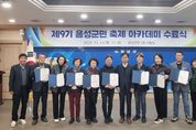 [ 타임즈 - 김시창 기자 ] 음성군은 13일 군청 상황실에서 제9기 음성군민 축제 아카데미 수료식을 개최했다고 밝혔다. 군민 축제 아카데미는 주민 주도형 축제를 위해 상반기 특별강좌교육과 하반기 정기강좌교육으로 나눠 운영됐다. 상반기 특별강좌교육은 지난 3월 한 달간 제26회 음성품바축제 ‘음성N품바 경연대회’ 참가자를 위해 자문과 지도 강의로 이뤄졌다. 또 하반기 정기강좌교육으로 지난 9월부터 10월까지 매주 월요일마다 축제 이론과 발전 방안 교육을 5회 진행했으며, 교육 기간 중 이천쌀문화축제 벤치마킹을 다녀왔다. 그동안 진행된 아카데미 주요 내용은 △축제의 본질 및 축제 정책의 이해 △음성군 축제의 지속가능 발전 및 지향 △설성문화제 활성화 방안 등이다. 특히 축제 전문가 강의와 다양한 아이디어 도출을 위한 교육 등 축제 실무와 축제의 지속 가능한 발전 및 자생적으로 지역 주민의 축제 참여율을 높이는 내용을 강화했다. 조병옥 군수는 “이번 아카데미를 통해 군민의 지역축제 관심을 유발하고 적극적인 참여를 확대하는 계기가 됐다”며 “내년에도 축제 아카데미를 운영함으로써