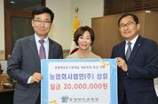 [ 타임즈 - 김시창 기자 ] 충청북도교육청은 8일 오후, 충북체육중‧고등학교에서 농업회사법인(주)상림과 학교 발전과 학생선수 지원을 위한 기탁금 전달식을 개최했다고 밝혔다. 이날 기탁식에는 윤건영 충청북도교육감과 농업회사법인(주)상림의 박언주 대표이사와 김석민 이사가 참석했다. 농업회사법인(주)상림은 충북체‧중고의 학생선수들의 경기력 향상과 교육활동을 위해 5년간 400만 원씩 총 2,000만 원을 학교 측에 전달하여 지속적인 도움을 줄 예정이다. 박언주 대표이사는 “우리 지역의 기업으로서 학생선수들이 더 좋은 환경에서 훈련하고 성장할 수 있도록 돕고 싶었다.”라고 했다. 이에, 윤건영 교육감은 “지역 사회가 충북 학교체육 발전을 위해 학생선수들의 소중한 꿈을 응원해 주신 것에 대해 깊은 감사를 드린다.”라고 말했다.