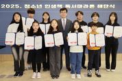[ 타임즈 - 김시창 기자 ] 충청북도교육청 직속기관 교육도서관은 6일, 청소년들의 꾸준한 독서활동을 장려하고 독서문화 확산을 위한 2025년 청소년 인생책 독서마라톤 해단식을 개최했다. 지난 3월부터 시작한 청소년 인생책 독서마라톤은 11월까지 총 141교에서 초등학생 552명, 중학생 260명, 고등학생 36명 등 총 848명의 학생이 참여했다. 독서마라톤에는 487명의 학생이 완주했으며, 구간별 완주인원은 ▲개권유익(開卷有益:7편 이상) 211명 ▲독서삼매(讀書三昧:14편 이상) 70명 ▲수불석권(手不釋卷:21편 이상) 206명이다. 학교 단위로 함께 완주한 단체팀은 총 5팀으로, 개권유익은 개신초(23명), 산남초(19명), 옥동초(13명), 송절중(12명) 등 4팀이고, 수불석권에는 청안초(5명) 1팀이 독서 여정을 마무리했다. 올해는 완주자를 대상으로 '나만의 인생책 독후감 공모전'을 새롭게 운영했으며, 심사를 통해 총 11명의 수상자가 선정됐다. 독후감 공모전 입상자 중 4명의 학생이 무대에 올라 참여 소감과 나만의 인생책을 소개하는 발표를 진행하며, 학생들은 7개월간의 독