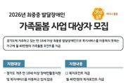 [ 타임즈 - 김시창 기자 ] 경기도가 2026년 최중증 발달장애인 가족돌봄 사업 대상자 145가구를 12월 2일까지 모집한다. 최중증 발달장애인이란 도전적 행동이 심하고 일상생활에 제약을 지닌 통합돌봄이 필요한 발달장애인이다. 경기도는 돌봄이 필요한 모든 도민들을 대상으로 누구나, 언제나, 어디나 빈틈없는 돌봄을 제공하는 360도 돌봄사업을 하고 있다. 최중증 발달장애인 가족돌봄 사업은 이 가운데 ‘어디나 돌봄’ 사업의 하나로 진행한다. 2024년 4월 처음 가족돌봄 사업을 시행한 이래 매달 210가구에 월 40만 원씩 돌봄포인트를 제공해 생필품 구입부터 여가활동 지원까지 다양한 부분에서 사용하여 장애인 당사자와 가족의 생활안정에 기여하고 있다. 2026년 최중증 발달장애인 가족돌봄 사업의 지원 대상은 경기도에서 거주하는 복지관, 직업재활서비스 등 복지서비스 미이용으로 돌봄사각지대에 놓인 만 18세 이상 발달장애인이다. 선정 시 월 40만 원 가족돌봄포인트를 1년간 지원하고 지속적인 모니터링으로 복지서비스와 대상자를 연계하는 서비스를 제공한다. 2026년 모집인원은 145명으로 전년과 다르게 모집