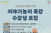 [ 타임즈 - 김시창 기자 ] 양평군은 새 학기를 맞아 양동도서관에서 초등학생을 대상으로 운영하는 ‘이야기 놀이 특강’의 수강생을 오는 22일부터 26일까지 모집한다고 밝혔다. 이번 특강은 옛 설화 속 주인공이 되어 또래와 협력해 이야기를 만들어 보는 스토리텔링 프로그램이다. 시나리오 속에서 나만의 캐릭터를 만들고 싶은 초등학교 3~6학년 학생이라면 누구나 신청할 수 있다. 강좌는 3월 11일 오후 3시 30분부터 약 3시간 동안 참여형 프로그램으로 진행되며, 장소는 양동도서관 3층 강의실이다. 전진선 양평군수는 “앞으로 양동도서관이 어린이들에게 다양한 독서문화 프로그램을 제공하고, 이번 특강이 초등학생들의 문해력 향상에 도움이 되기를 바란다”고 전했다.