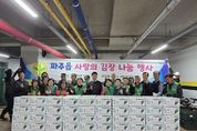 [ 타임즈 - 김시창 기자 ] 파주시 파주읍 새마을부녀회와 새마을지도자협의회는 지난 11일, 겨울을 앞두고 지역 내 어려운 이웃을 위한 ‘사랑의 김장김치 나눔 행사’를 실천했다고 밝혔다. 이날 행사는 새마을부녀회원들과 지도자협의회원들이 이틀에 걸쳐 협력해 진행됐다. 전날인 10일에는 배추 절이기와 재료 손질 등 사전 준비를 진행했으며, 11일에는 본격적으로 속 넣기와 포장 작업을 이어가며 정성껏 김치를 담갔다. 완성된 김장김치 119상자는 새마을부녀회원이 관내 저소득 독거 어르신 가정에 직접 방문하며 전달해 따뜻한 정성을 전했다. 이선희 파주읍 새마을부녀회장은 “회원들과 함께 마음을 모아 담근 김치가 이웃들에게 힘이 되길 바란다”라며 “앞으로도 여성의 섬세한 손길로 지역 나눔을 실천하겠다”라고 전했다. 변봉수 파주읍 새마을지도자협의회장은 “지역사회가 함께 나누고 배려할 때 더 따뜻해진다”라며 “작은 정성이지만 이웃들에게 힘이 되길 바란다”라고 말했다. 윤상기 파주읍장은 “매년 이어지는 김장김치 나눔 행사는 지역 공동체의 온정을 느낄 수 있는 소중한 자리”라며 “앞으로도 민관이 협력해 복