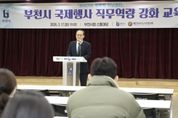[ 타임즈 - 김시창 기자 ] 부천시는 지난 17일 시청 소통마당에서 시 공무원과 산하기관 직원 등 80여 명이 참석한 가운데 ‘국제행사 직무역량 강화 교육’을 실시했다. 이번 교육은 지방정부의 국제교류와 국제행사 중요성이 확대됨에 따라 공직자의 국제행사 기획·운영 역량을 높이고, 글로벌 업무 대응 능력을 강화하기 위해 마련됐다. 또한, 대한민국시도지사협의회 협조로 추진해 지방외교 관련 사업을 소개하고 지방정부 국제행사의 역할과 발전 방향에 대한 이해를 높이는 시간으로 진행됐다. 이날 교육에서는 신규 공무원으로 구성된 글로벌 서포터즈 위촉장 수여식도 함께 진행됐다. 글로벌 서포터즈는 부천시 공무원으로 구성된 외국어 자원봉사단으로, 국제행사와 외국인 관련 사업 현장에서 통역과 외국어 지원을 담당하며 시의 국제교류 역량을 높이는 역할을 하고 있다. 현재 약 50명 규모로 운영 중이며, 부천국제청소년홈스테이 등 주요 국제교류 행사에서 다양한 활동을 이어가고 있다. 이어진 교육에서는 윤영혜 동덕여자대학교 글로벌MICE융합전공 주임교수가 강사로 나서 △글로벌 시대 지방외교의 중요성 △국제행사 정책 동향 △성