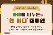 [ 타임즈 - 김시창 기자 ] 시흥시장곡종합사회복지관은 연말을 맞아 지역사회에 따뜻한 마음을 전하기 위한 ‘마음을 나누는 한 마디’ 캠페인을 진행한다. 이번 캠페인은 이웃을 향한 응원의 말, 위로의 말, 사랑의 말을 담은 짧은 문장을 시민들로부터 응모 받아 서로에게 위로와 용기를 건네는 나눔의 장을 만들기 위해 마련됐다. 참여자는 직접 창작한 문장 또는 문학 작품 속 인용문 중 마음을 전하고 싶은 한 문장을 제출할 수 있다. 응모 기간은 11월 3일부터 11월 14일까지이며, 시흥시민이라면 누구나 참여할 수 있다. 참여 방법은 시흥시장곡종합사회복지관 1층 복도 현장 신청 또는 온라인으로 하면 된다. 선정된 문장은 내부 심사를 거쳐 캘리그래피 작품으로 제작되며, 오는 12월 시흥시장곡종합사회복지관 복도갤러리에서 전시된다. 전시된 작품은 시민들에게 한 해를 따뜻하게 마무리할 수 있는 작은 위로의 메시지로 전달될 전망이다. 시흥시장곡종합사회복지관 관계자는 “짧은 문장이지만, 시민 한 사람 한 사람의 따뜻한 마음이 모여 이웃에게 큰 위로가 될 것”이라며 “많은 시민이 이번 캠페인에 참여해 따뜻한 시흥을 함
