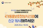 [ 타임즈 - 임성희 기자 ] 추석 연휴 유실·유기동물을 발견하거나, 반려동물을 잃어버렸다면 국가동물보호정보시스템에 신고·게시해주세요! ■ 추석 연휴 유실·유기동물 구조 통합 신고시스템 운영으로 신속한 온라인 신고·접수 가능 · 기간: 2025.10.2.(목)~10.10.(금) · 신고 게시: 국가동물보호정보시스템 누리집 팝업창 ■ 유실·유기동물 온라인 신고·접수 방법 ① 유실·유기동물을 발견한 경우 국가동물보호 정보시스템 '동물발견' 배너 클릭 → 발견장소, 사진, 개체 특징 등 제보 등록 → 해당 지자체 보호센터 정보제공 → 지자체 동물보호센터 신속 대응 ② 반려동물을 분실한 경우 국가동물보호 정보시스템 '동물분실' 배너 클릭 → 반려동물 분실장소, 일시, 사진 등 정보 등록 → 시민 간 발견 정보 공유(댓글 창 활성화) → 필요시 분실신고 병행(등록동물 정보 변경) 유실·유기동물 구조 통합신고로 보호자를 빠르게 찾아드리겠습니다