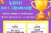 [ 타임즈 - 김시창 기자 ] 이천시는 행정안전부 주관 ‘2025 코리아그랜드페스티벌(KOREA GRAND FESTIVAL)’에 맞춰 지역화폐 이용을 촉진하고 지역 상권을 활성화하기 위한 ‘이천사랑 지역화폐 캐시백 5% 이벤트’를 추진한다고 밝혔다. 이번 행사는 10월 29일부터 11월 9일까지 12일간 전국에서 동시에 개최되는 코리아그랜드페스티벌 소비촉진 캠페인의 하나로, 이천시는 국비 1억 5천만 원을 확보해 사용자 충전금으로 결제한 금액에 한정해 결제금액의 5%를 적립금(인센티브, 정책수당 등으로 충전된 금액 사용분은 지급 대상에서 제외)으로 지급한다. 이용자는 이천사랑지역화폐를 통해 1인당 최대 20,000원까지 5% 적립금을 받을 수 있으며, 별도의 신청 절차 없이 자동으로 지급된다. 지급된 적립금의 사용 유효기간은 5년이며, 이천시 지역화폐 가맹점에서 자유롭게 사용이 가능하다. 이천시는 이번 행사를 통해 시민의 실질적인 소비 혜택과 지역 상권 활성화를 동시에 도모할 계획이다. 김경희 이천시장은 “코리아그랜드페스티벌 이천사랑지역화폐 캐시백 이벤트를 통해 지역 소비가 활발히 이어지고, 소상공인 매출 회복