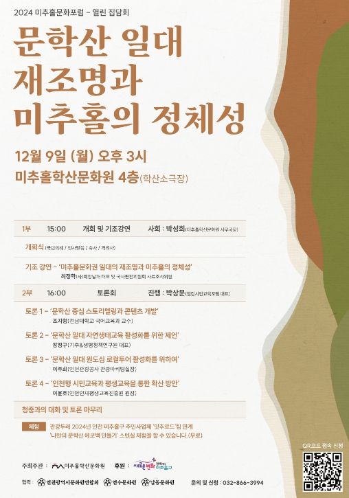특히, 개항 문화권에 비해 상대적으로 주목받지 못했던 문학산 일대 원도심 지역(미추홀 문화권)의 가치를 시민들과 공유하며, 도시 브랜딩 가능성을 모색하는 자리가 될 예정이다.