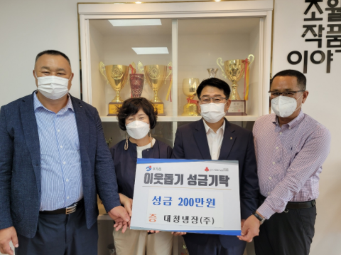 타임즈 임지연 기자 | 광주시 초월읍 대쌍령리에 위치한 ㈜대청냉장 유영숙·민강원 대표는 30일 초월읍 행정복지센터를 방문, 성금 200만원을 기탁했다.