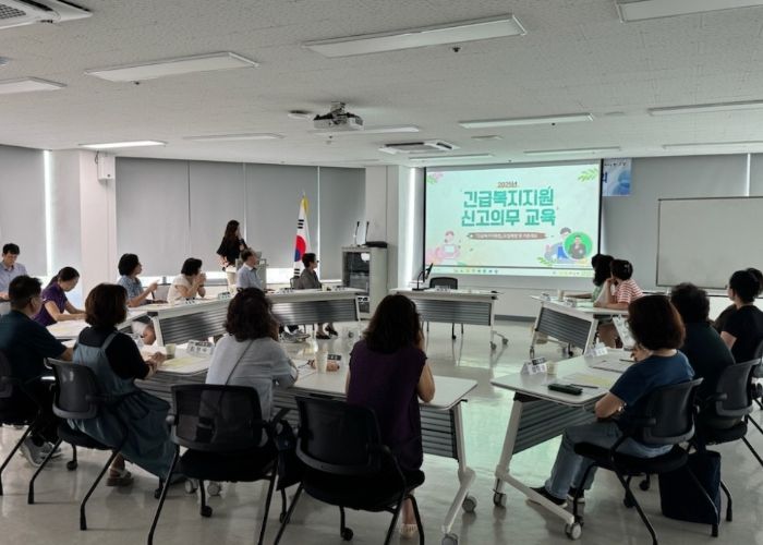 교육은 긴급복지 신고와 관련된 법적 의무 및 복지사각지대 대상자 발견 시 신고 방법과 보호 절차 안내, 실제 우수사례가 담긴 동영상 자료 시청 등으로 진행됐다.
