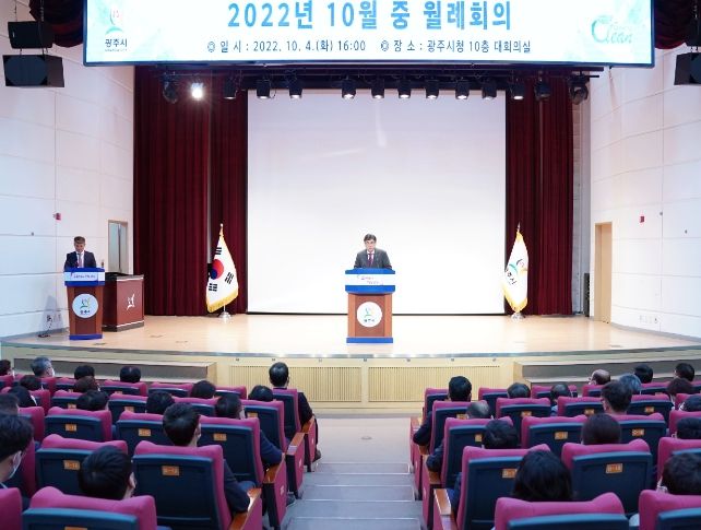 타임즈 김시창 기자 | 광주시는 4일 시청 대회의실에서 민선 8기 출범 이후 첫 대면 월례회의를 개최했다.