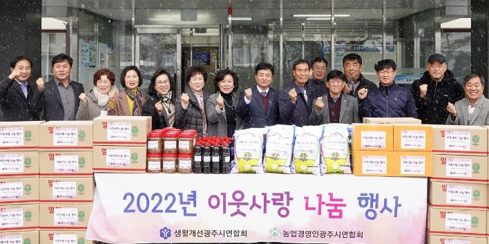 [ 타임즈 - 김시창 기자 ] 연말연시를 맞아 소외계층을 향한 온정의 손길이 이어지고 있는 가운데 생활개선광주시연합회와 농업경영인광주시연합회가 지난 15일 광주시 농업기술센터에 홀몸노인, 조손가정, 한부모가정 등 관내 소외계층 50가구에 쌀과 장류, 쌀국수 등 500만원 상당의 생활용품을 전달했다.