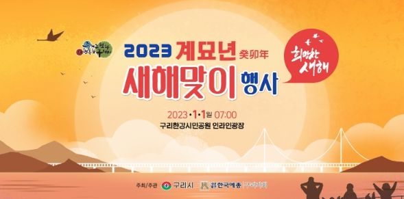 [ 타임즈 - 박미영 기자 ] 구리시는 2023년 1월 1일 오전 7시에 구리한강시민공원 인라인광장에서 ‘2023 계묘년 새해맞이 행사’를 개최한다.