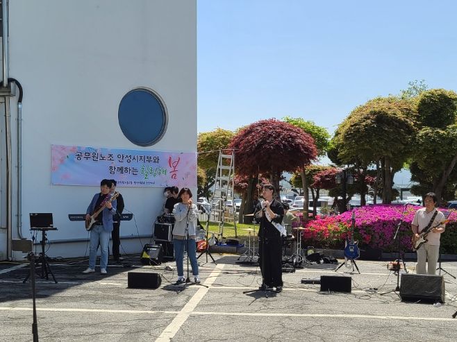 이번 행사는 공무원노조 안성시지부에서 격무에 시달리는 직원들에게 봄날의 햇살과 음악을 함께 즐길 수 있도록 기획하여 공무원 음악동호회 회원들이 그동안 갈고닦은 실력을 유감없이 발휘했으며, 노조에서 준비한 커피차 음료를 무료로 제공하며 직원들의 큰 호응을 얻았다.