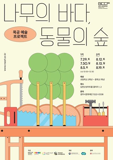 [ 타임즈 - 김시창 기자 ] (재)광주시문화재단(대표이사 오세영)은 목공 예술 프로그램 ‘나무의 바다, 동물의 숲’을 오늘 7월 29일부터 8월 26일까지 남한산성아트홀 전시실에서 운영한다고 밝혔다.