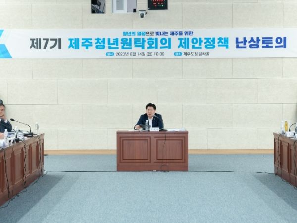 ‘제7기 청년원탁회의 제안정책 난상토의’가 14일 오전 10시 제주도청 본관 4층 탐라홀에서 오영훈 지사와 기획조정실장 등 실국장을 비롯해 제7기 청년원탁회의 청년위원 등 30여명이 참석한 가운데 개최됐다.