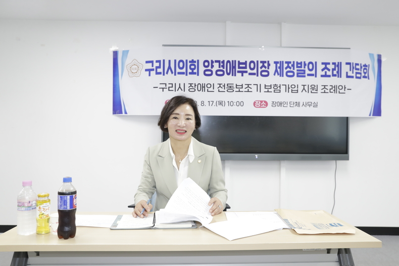 양경애 의원은 구리시 장애인 전동보조기기 보험 가입 및 지원 조례안을 지난 8월 16일 입법예고 하였고, 전동보조기기 보험 가입과 관련하여 구리시 장애인연합 회의 의견을 적극적으로 청취하고자 직접 찾아가는 간담회 자리를 마련했다.