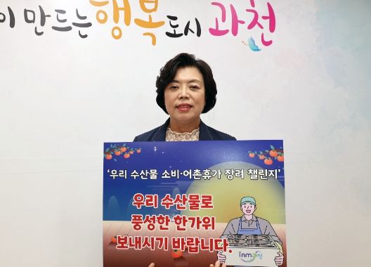 신계용 과천시장은 추석을 앞두고 수산물 소비를 활성화하자는 취지를 담아 ‘추석 명절은 우리 수산물로’라는 메시지와 함께 인증 사진을 공식 SNS 채널 등을 통해 홍보하고 다음 주자로 과천시의 친선도시 통영시의 천영기 시장과 이웃도시 의왕시의 김성제 시장을 지명했다.