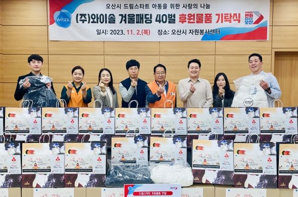 [ 타임즈 - 김시창 기자 ] 오산시는 지난 2일 오산시 가장로에 위치한 전자부품 제조업체 (주)와이솔 임직원 일동이 오산시자원봉사센터를 방문, 오산시 드림스타트 아동들을 위해 패딩 40벌을 기탁했다.