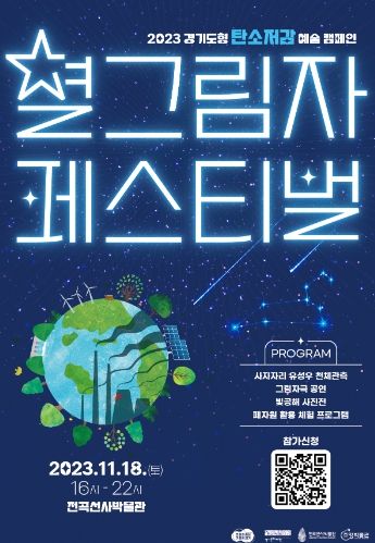[ 타임즈 - 김시창 기자 ] 경기문화재단은 11월 18일 16시부터 22시까지 전곡선사박물관에서 2023 경기도형 탄소저감 예술캠페인 〈별그림자 페스티벌〉을 개최한다. 경기도형 탄소저감 예술캠페인은 기후위기로 인한 환경 보호 및 탄소저감을 위한 실천적 행동의 필요성이 대두되면서 시작됐다. 이번 행사는 탄소저감을 통한 환경보호 실천을 독려할 수 있는 예술 캠페인을 발굴하고 도민과 함께 지속가능한 실천방안을 모색하기위해 마련됐다.