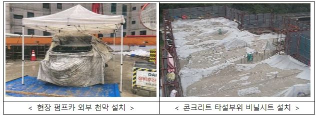 이번 표준시방서 개정(안)은 강우, 강설 시 콘크리트 타설을 원칙적으로 금지하되 부득이 타설할 경우 필요한 조치를 사전, 사후로 구체화하고, 이에 대한 책임기술자(감리)의 검토·승인을 의무화하는 것이 핵심이다.