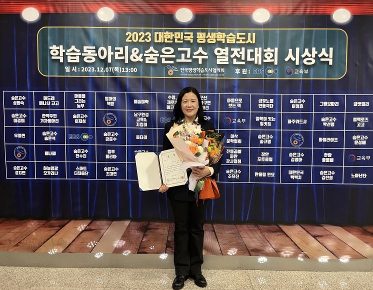 전국평생학습도시협의회가 주최하고 교육부와 EBS에서 후원하는 이 대회는 전국 196개 평생학습도시에서 활동하는 학습동아리와 강사의 우수사례를 발굴하는 대회다. 이 대회 숨은고수 부문에서 강남애(愛) 미래 문해교실 프로그램의 조유진 강사가 장려상을 수상했다.