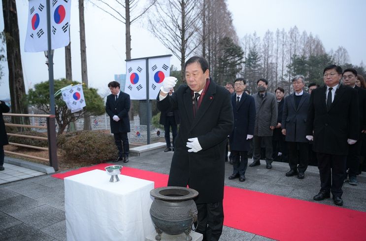 최민호 시장과 참석자들은 기관별 헌화 분향을 통해 순국선열 및 호국영령의 숭고한 넋을 기리며, 2024년 갑진년 새해 미래전략수도 세종 발전에 힘을 모을 것을 다짐했다.