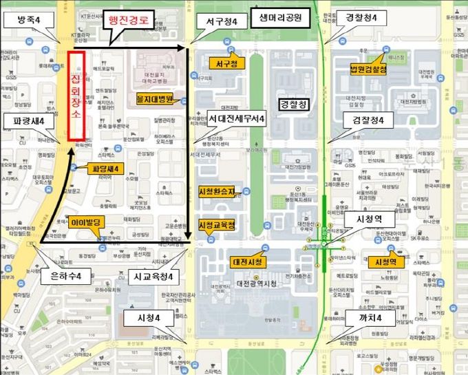 대전시 관계자는 "29일 오후 7시 30분부터 9시30분까지 가두행진 통제 구간에 교통정체가 예상된다”라며 "이 일대를 이용하는 일반 차량도 우회하여 운행해 달라"고 당부했다.