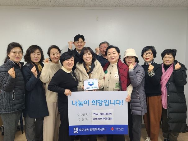한태정 우만2동장은 “앞으로도 공적 급여를 받지 못하는 대상자나 민간 자원이 필요한 사례관리 대상자 등을 적극 발굴하여 후원금이 의미 있게 사용될 수 있도록 최선을 다하겠다”고 말했다.