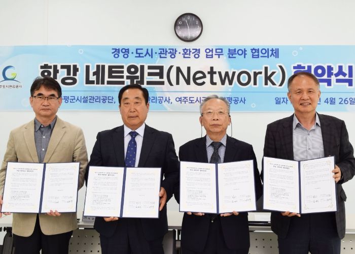 협약식은 양평공사 신범수 사장, 가평군시설관리공단 최승수 이사장, 광주도시관리공사 이학노 기획경영실장, 여주도시공사 임명진 사장이 참석한 가운데 지난 26일 양서면에 위치한 양서에코힐링센터에서 진행됐다.