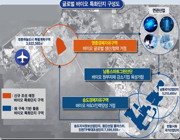 인천시가 발표한 주요 내용은, 송도 바이오 클러스터를 중심으로 남동 지역(바이오 원부자재 및 소부장 육성 거점)과 영종 지역(바이오 글로벌 협력 거점)을 연결하는 바이오-트라이앵글(Bio-Triangle) 특화단지 조성 전략이다.