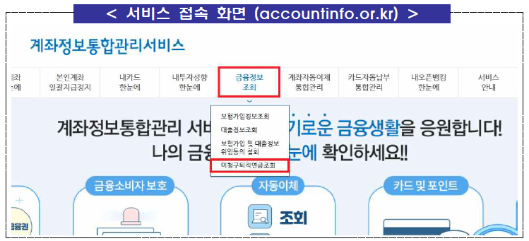 □ NH농협은행(은행장 이석용)은 고용노동부, 금융위원회, 금융감독원과 함께 29일부터 「어카운트인포」 미청구 퇴직연금 조회 서비스를 실시한다고 밝혔다.