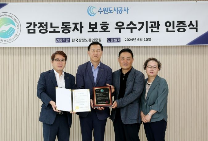[ 타임즈 - 김시창 기자 ] 수원도시공사는 10일 한국감정노동인증원으로부터 ‘감정노동자 보호 우수기관’으로 인증 받았다고 밝혔다.