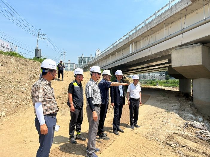 이화~삼계간 도로확장공사 관련 우기 도래 전 하천 통수단면적 확보를 위해 현곡1교, 옥길 1교 가도 철거를 완료했으며, 배수로 내 성토재 우수 유입 방지 대책 마련, 성토부 임시 배수로 정비 및 추가설치 작업도 완료하도록 했다.