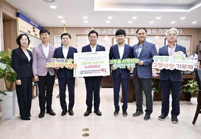 전진선 양평군수는 “고향사랑기부제 상호기부에 동참해주신 농협 임직원 분들에게 진심으로 감사드린다”며 “농협 임직원들의 뜻을 모은 기부금을 통해 지역경제 활성화에 기여할 수 있도록 하겠다”고 말했다.
