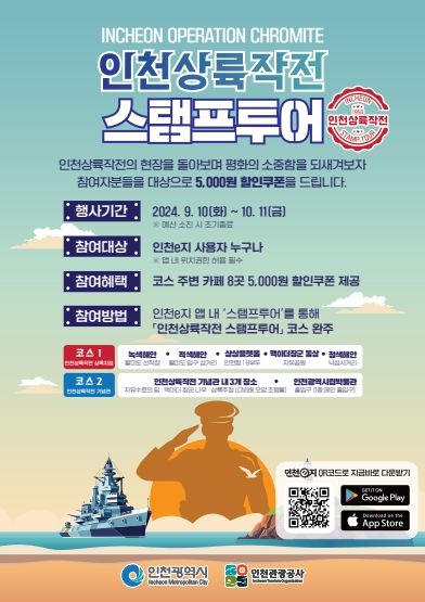 [ 타임즈 - 김시창 기자 ] 인천광역시와 인천관광공사는 9월 10일부터 10월 11일까지 인천상륙작전 연계 평화․안보 관광자원을 활용한‘인천상륙작전 모바일 스탬프투어’를 운영한다고 밝혔다.