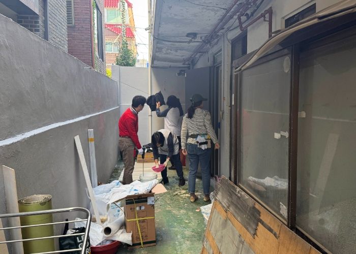 봉사자들은 조를 나눠 가구별로 낡고 훼손된 벽지를 제거하고, 깨끗한 새 벽지를 벽에 바르고 뒷정리는 하는 등 서로 협력하며 주거 공간을 밝고 쾌적하게 만들었다.