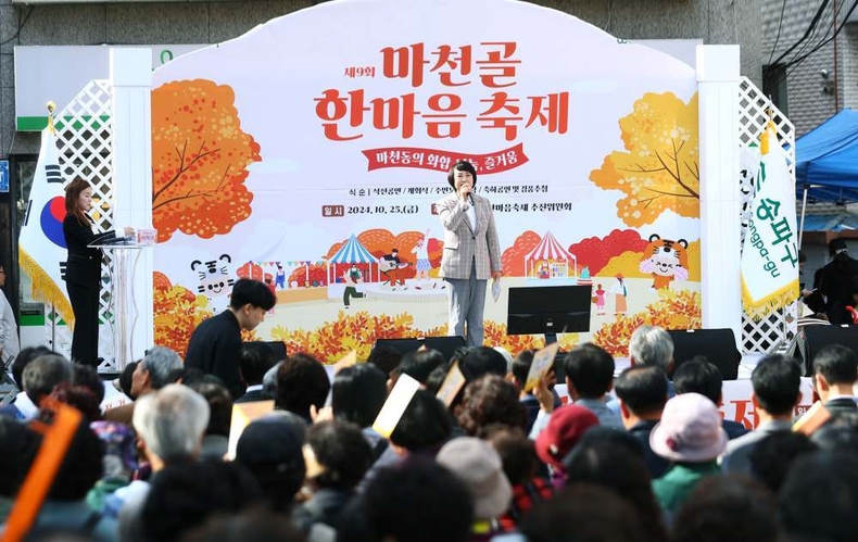 [ 타임즈 - 김시창 기자 ] 서울특별시 송파구의회(의장 이혜숙)는 10월 25일(금) 14시 마천중앙시장 인근 에서 열린 ‘제9회 마천골 한마음축제’ 개회식에 참석했다. 이날 축제는 주민자치단체 및 지역동아리팀의 색소폰 연주, 난타 등의 식전공연 을 시작으로 개회식, 주민노래자랑, 축하공연 및 경품추첨으로 진행되었다.