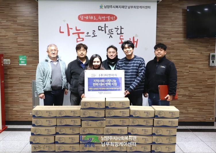 [ 타임즈 - 김시창 기자 ] 남양주시는 지난 6일 ㈜티앤아이 임직원들이 한파에 대비해 남양주시사회복지관 남부희망케어센터(센터장 최정선)에 ‘사랑의 핫팩’ 1,600개를 전달했다고 밝혔다.