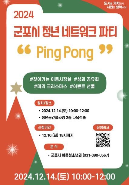 2부 성과공유회는 청년네트워크 파티 “ping pong”이라는 부제를 가지고 편안하고 자유로운 분위기에서 2024년 청년정책 및 활동에 참여했던 청년들의 성과물 전시 및 발표를 통해 한 해 동안 추진한 사업과 활동 결과를 서로 핑퐁(ping pong)하며 지역 청년들과 공유·소통하는 화합의 장을 마련할 예정이다.