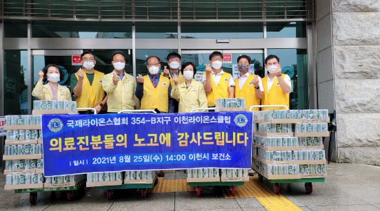 이천라이온스클럽회장(박용기) 및 함께 참석한 자원봉사센터장(민호기)은 “코로나19 방역 및 예방접종으로 노고가 많은 보건소 의료진들에게 힘을 실어주고 싶었다”며 “덥고 습한 날씨에도 코로나19 방역사업에 최선을 다하는 의료진들에게 조금이나마 도움이 되었으면 좋겠다”고 전했다.