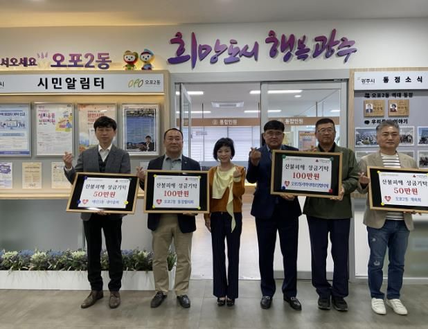 [ 타임즈 - 김시창 기자 ] 광주시 오포2동 통장협의회‧지역사회보장협의체‧체육회‧매산3통 새마을회는 8일 자매도시인 안동시의 산불 피해 복구를 위한 성금 300만 원을 기부했다.