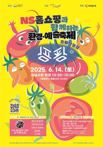 성남시 판교환경생태학습원은 2025년 환경의 날과 환경교육주간을 기념하여 오는 6월 14일(토), 성남시청 너른못광장에서 환경·예술 축제 『손바닥농장, 팜팜』을 개최한다.