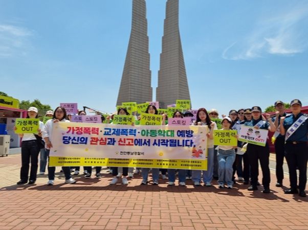 [ 타임즈 - 김시창 기자 ] 천안동남경찰서는, 2025년 6월 5일 11:00경 천안시 동남구 목천읍 소재 K-컬쳐 축제장(독립기념관)에서 전국가정폭력상담소 연합회와 함께 가정폭력 및 아동학대 등 사회적 약자 대상 범죄 예방을 위한 합동 캠페인을 실시했다.